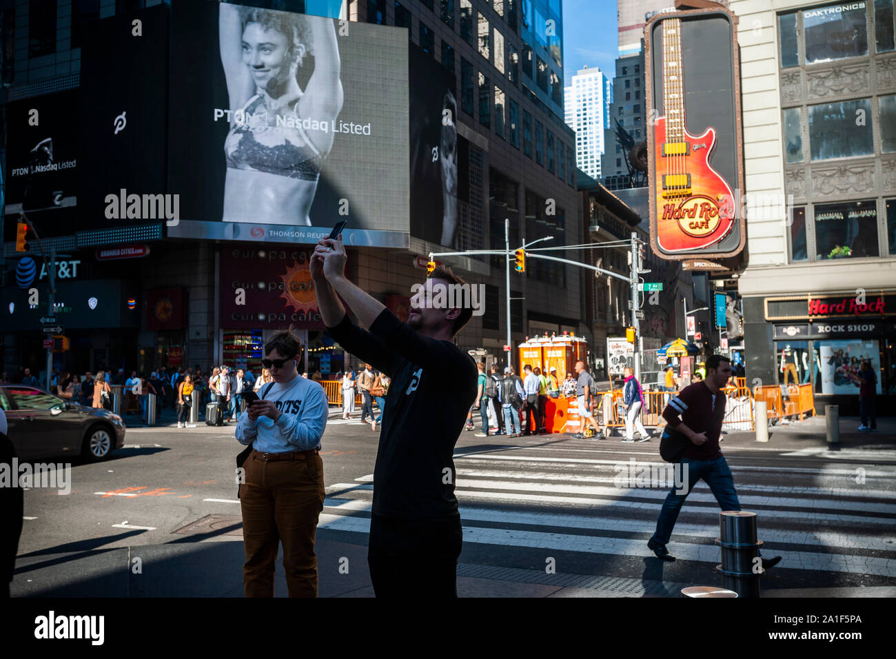 A Giant Digital Display In Times Square In New York On Thursday September 26 2019 Displays Video For The Initial Public Offering Of The At Home Fitness Company Company Peloton Interactive Peloton Supplies